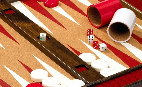 The experts' choice, Crisloid has provided elegance and reliability for generations of tournament heroes. This twenty-eight inch board boasts a precision-fitted cork playing surface, so your dice topple with whispered bounces and the polished marbleized acrylic stones glide true. The solid wood exterior maintains merit for countless seasons, whether you play with or against the grain. A cut wood pocket at the board's nucleus cradles the one-inch doubling cube. Equipped with cylindrical cork-lined dice cups featuring raised lips, promoting maximum pip spin for fair play. Fabricated in the U.S.A. and played around the world. Spice up your game in eye-roasting red crocodile. Savoir faire not included.