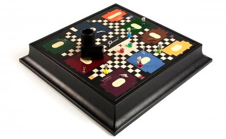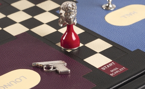 Beyond the shadow of a doubt, this magnificent murder-mystery set proves Geoffrey Parker is guilty of unparalleled splendor. Since Cluedo's inception in 1949, the game has never before been offered in an edition this opulent. Hand-bound Dauphin calfskin enhances the intricate, interlocking inlays, each meticulously cut and glued into the board. Tearing a page from the 1960s classic, each playing piece boasts the bust of iconic characters in sterling silver and enamel, so Miss Scarlet shines and Colonel Mustard is cold to the touch. No detail overlooked, the weapons are crafted from sterling silver, and the Billiard Room is detailed with real billiard cloth. Thick-stock Cluedo cards, playing pieces, calfskin "Murder" investigation envelope, a pair of hand-bound leather crush-poof dice cups, and two colball-cornered precision dice are all secreted inside the magnificent game board. Whether in the library with the candlestick or in the dining room with the wrench, the scallop-sided plinth and breathtaking refinery make this edition of Cluedo a collectible worth of invesigation.