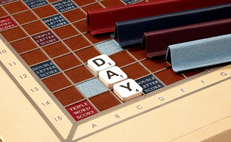 Luxury that goes way beyond words, every letter laid on this Scrabble set will feel like a triple-word score. Once again, Geoffrey Parker innovates with elegance that would translate to any language. This Dauphin-inlaid set features hand-bound scallop-sided plinth, both refined and regal. The board boasts silver or gold embossing under a nickel plated grid, so that syllables sparkle, whether you're throwing down "swank" or "sesquipedalian." Neatly stored beneath the board are four leather-bound letter racks, a felt drawstring bag, a booklet of rules, and the letters, made of buttery bridle-hide. The gameboard is revolutionary, mounted to a concealed Lazy Susan, allowing the playing surface to rotate freely with the tiles locked firmly into place.