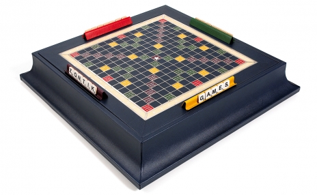 Luxury that goes way beyond words, every letter laid on this Scrabble set will feel like a triple-word score. Once again, Geoffrey Parker innovates with elegance that would translate to any language. This Dauphin-inlaid set features hand-bound scallop-sided plinth, both refined and regal. The board boasts silver or gold embossing under a nickel plated grid, so that syllables sparkle, whether you're throwing down "swank" or "sesquipedalian." Neatly stored beneath the board are four leather-bound letter racks, a felt drawstring bag, a booklet of rules, and the letters, made of buttery bridle-hide. The gameboard is revolutionary, mounted to a concealed Lazy Susan, allowing the playing surface to rotate freely with the tiles locked firmly into place.