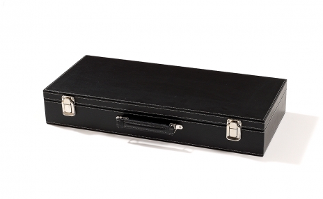 You'll be the envy of all your friends with this executive American Mahjong set! Features four deluxe wood tracks, two felt trays, tiles and money that fit neatly into a sophisticated black leatherette case with white stitching. Take "the game of a hundred intelligences" to the next level!