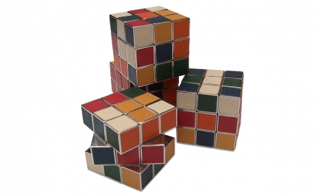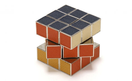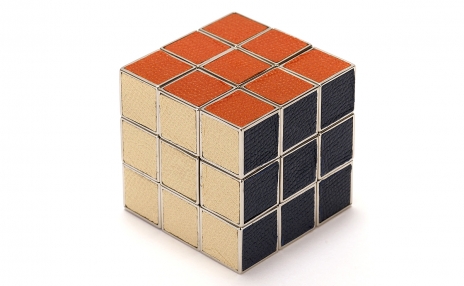 DISCONTINUED. Sophistication requires no solution. For the executive looking for something other than fortune to hold in his hands, the classic mechanical puzzle toy gets a classy twist. Our handmade, solid chrome Rubik's Cube® is accented with vibrant leather-inlaid sides that provide poise to every pivot. But enthusiasts of the original take note, the cube is not designed for "speed cubing," for metal is not nearly as forgiving as the plastic you grew up with. Like the fates, this cube has to be precisely aligned in order to work properly.